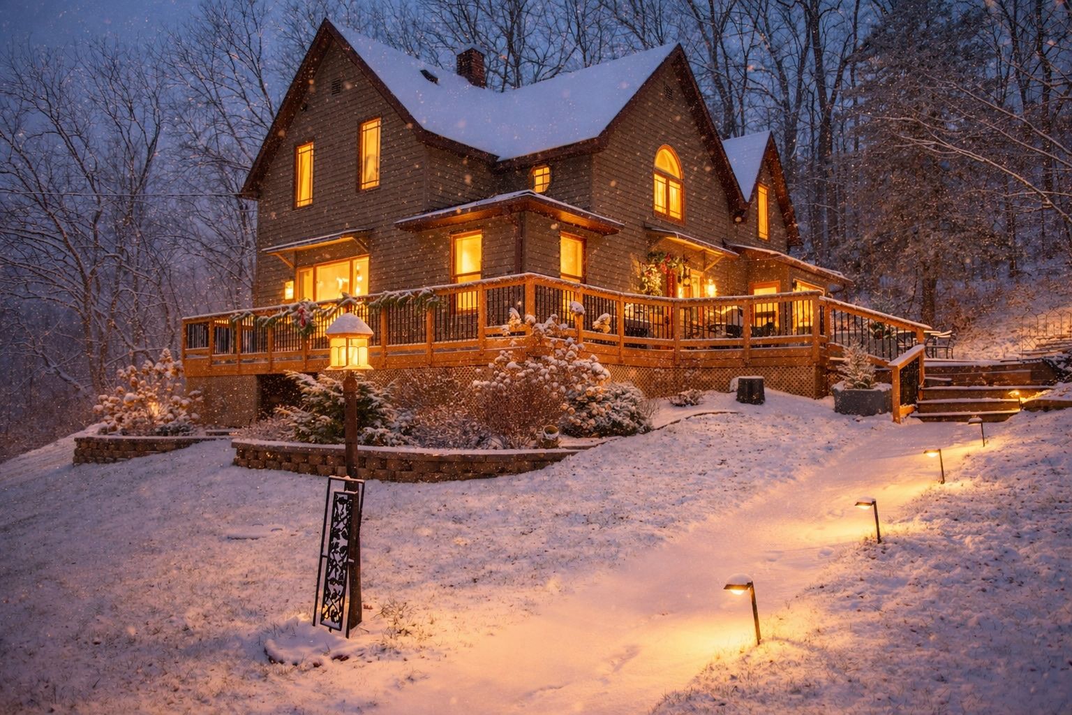 The original Farmhouse blends old-world charm with thoughtful modern updates and additions, creating a warm and timeless retreat. Sleeping up to eight, it is ideal for families or groups, with a spacious kitchen for shared meals and our signature fireplace for cozy winter nights. Perched on a low hill, the Farmhouse features a wraparound deck and full patio—perfect for sunrise coffee, outdoor dining and gatherings, and taking in the peaceful Driftless landscape.
