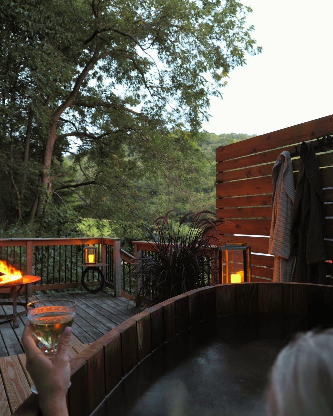 Located beside the Farmhouse, the newly renamed Nest Cabin is a cozy 480-square-foot retreat in the heart of Wisconsin’s Driftless Region. Inside, you’ll find a blissful, light-filled interior designed for comfort, and outside, a private Japanese Ofuro-style hot tub invites you to soak under the stars.