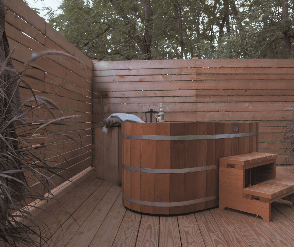 Located beside the Farmhouse, the newly renamed Nest Cabin is a cozy 480-square-foot retreat in the heart of Wisconsin’s Driftless Region. Inside, you’ll find a blissful, light-filled interior designed for comfort, and outside, a private Japanese Ofuro-style hot tub invites you to soak under the stars. Perfect for the solo traveler seeking a mindful escape or a wandering couple looking for a romantic Wisconsin cabin getaway, the Nest offers both intimacy and comfort. With thoughtful amenities and peaceful surroundings, this is a cabin where you can truly unplug, recharge, and reconnect.